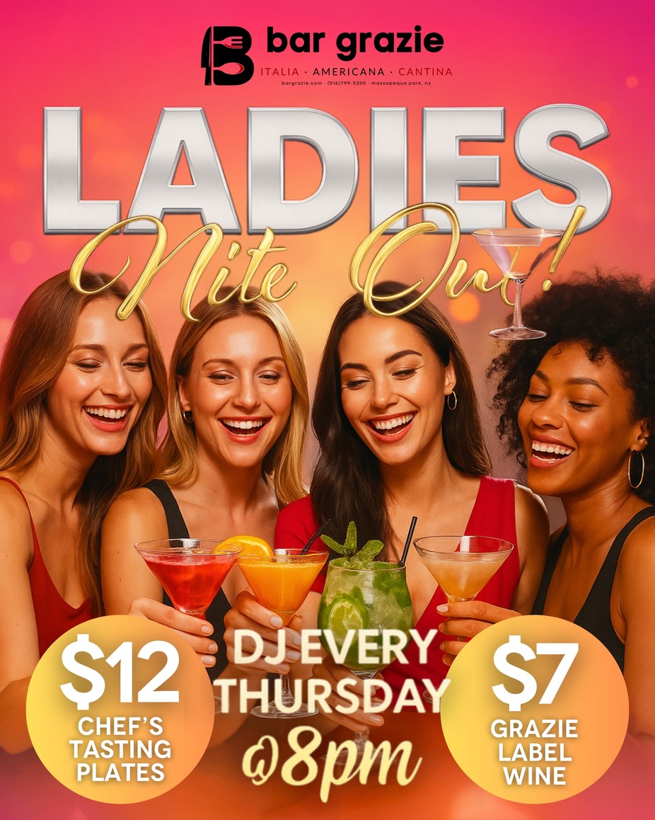 โจLadies Night Every Thursday @ Bar Grazieโจ Grab your girls and get ready to slay the night!