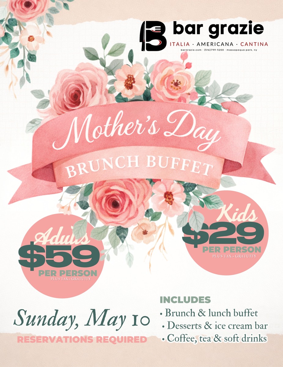Celebrate Mom the right way 💐 Join us for our Mother’s Day Brunch Buffet at Bar Grazie!