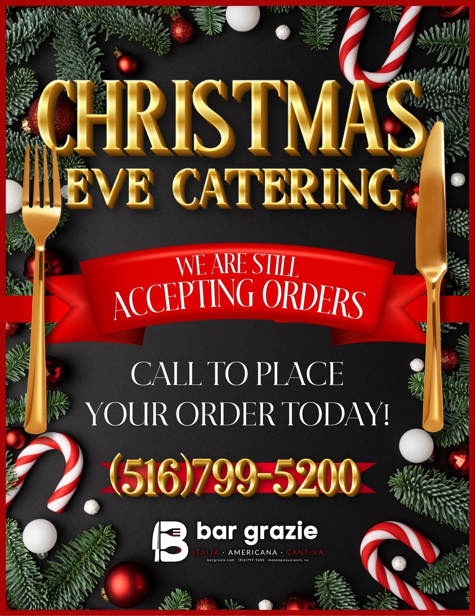 ๐ CHRISTMAS EVE CATERING BY BAR GRAZIE! ๐ Bring the flavor, the comfort, and the holiday magic of Bar Grazie right to your home this Christmas Eve!